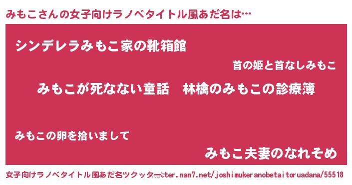 | ヒーロー風カッコイイあだ名 | 『仮面ミモダー』『友情の使者みもこ』 |