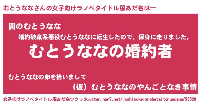 | 胡散臭い通販商品みたいなあだ名 | 『運命の人と巡り会える高級そうな壺…その名も「むとうなな」』 |