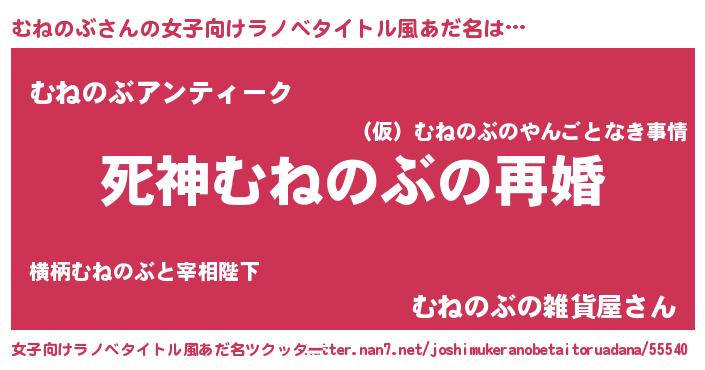 | 男性向けラノベタイトル風あだ名 | 『ノーゲーム・ノームネノブ』 |