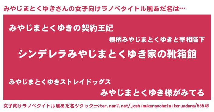| 男性向けラノベタイトル風あだ名 | 『緋弾のミヤジマトクユキ』 |