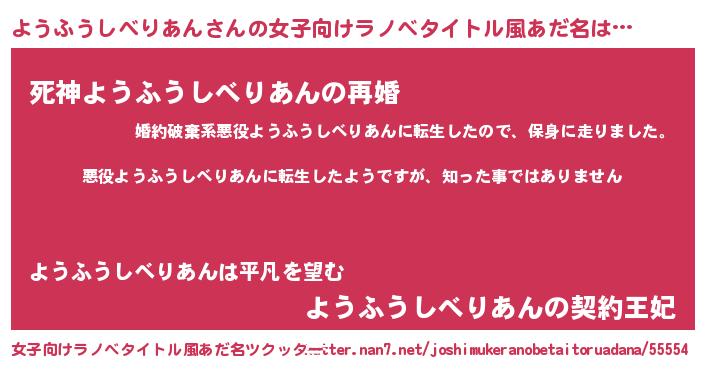 | 男性向けラノベタイトル風あだ名 | 『この素晴らしい世界にようふうしべりあんを!』 |