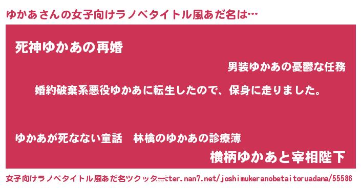 | 男性向けラノベタイトル風あだ名 | 『転生したらゆかあだった件』 |