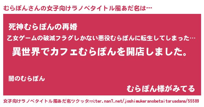 | 男性向けラノベタイトル風あだ名 | 『誰もが恐れるあのむらぽんが、ぼくの専属メイドになるようです。』 |