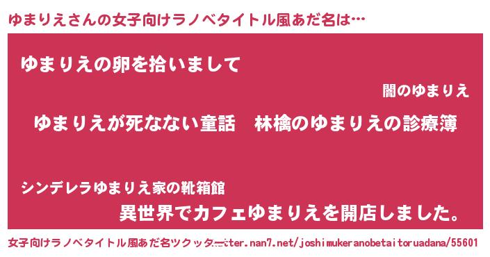 | 意味不明あだ名 | 『住所不定無職ゆまりえ(91歳)』 |