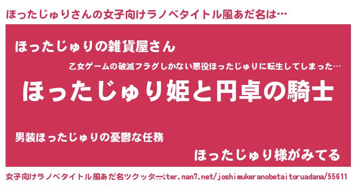 | 男性向けラノベタイトル風あだ名 | 『ほったじゅりの憂鬱』 |