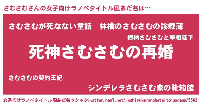 | ヒーロー風カッコイイあだ名 | 『慈愛の使者さむさむ』『仮面サムダー』 |