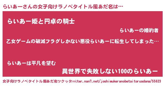 | 肩書あだ名 | 『らいあー教官』『らいあーCEO』 |