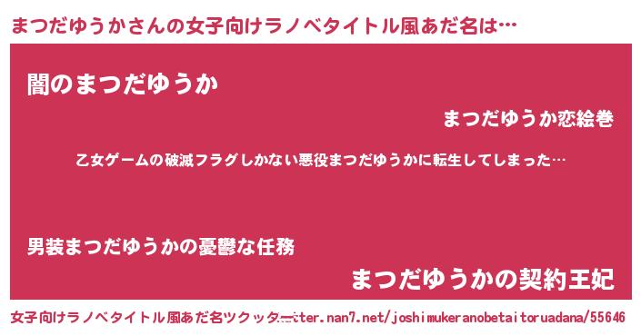 | ヘコむあだ名 | 『まつだゆうか(遠い目)』『まつにゅー』 |