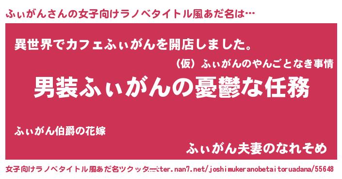| ヘコむあだ名 | 『ふぃがん(笑)』『ふぃもー』 |