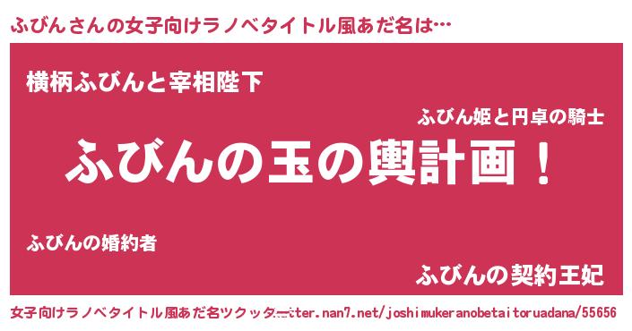 | 男性向けラノベタイトル風あだ名 | 『ふびん~年齢イコール彼女いない歴の魔法使い~』 |