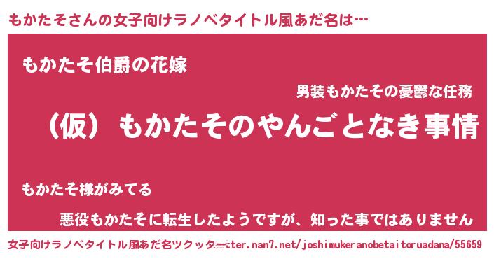 | 胡散臭い通販商品みたいなあだ名 | 『必ず成功する霊験あらたかなお札…その名も「もかたそ」』 |