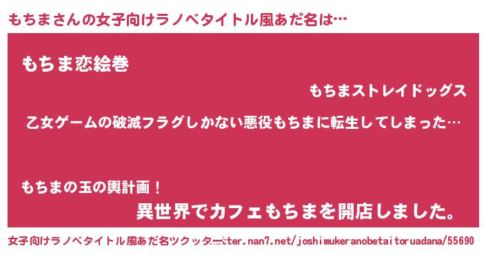| ヘコむあだ名 | 『もちま(苦笑)』『もちにー』 |