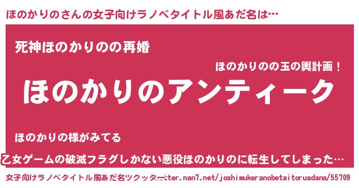 | 胡散臭い通販商品みたいなあだ名 | 『テレビで話題の高麗人参…その名も「ほのかりの」』 |