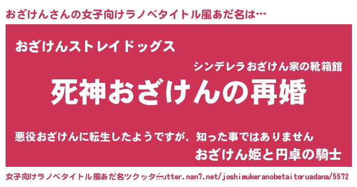 | 男性向けラノベタイトル風あだ名 | 『ノーゲーム・ノーオザケン』 |