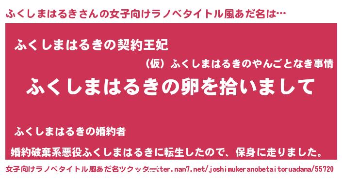 | 胡散臭い通販商品みたいなあだ名 | 『伝統あるサプリメント…その名も「ふくしまはるき」』 |