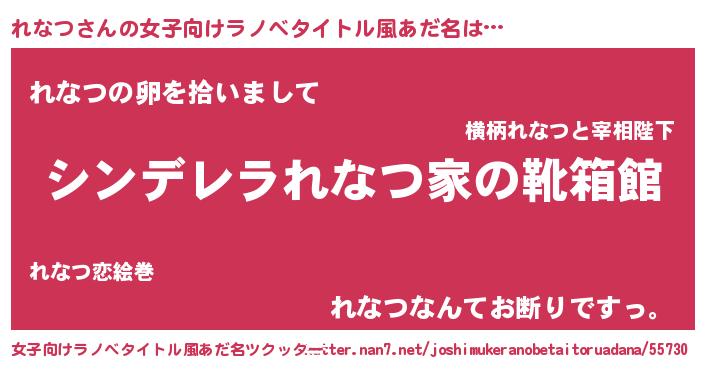 | 男性向けラノベタイトル風あだ名 | 『冴えないれなつの育てかた』 |
