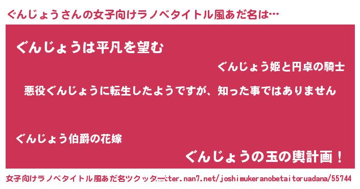 | 男性向けラノベタイトル風あだ名 | 『この素晴らしい世界にぐんじょうを!』 |