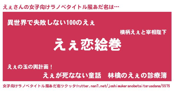 | 男性向けラノベタイトル風あだ名 | 『おまえをオタクにしてやるから、俺をえぇにしてくれ! 』 |