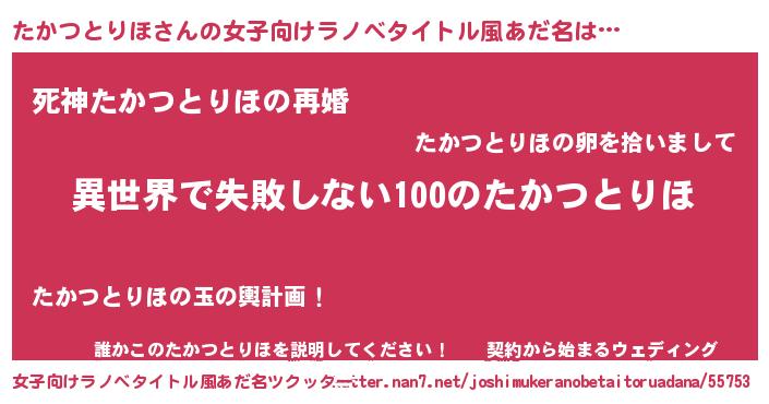 | 男性向けラノベタイトル風あだ名 | 『たかつとりほという概念が存在しない退屈な世界 』 |