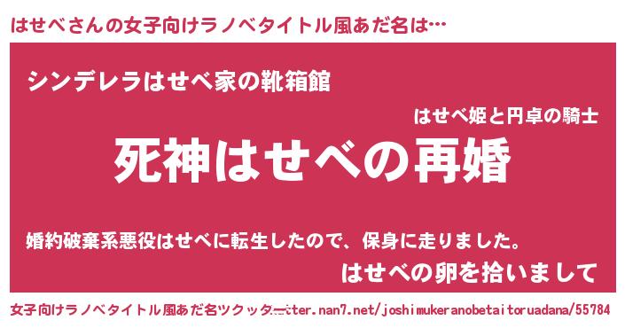 | 男性向けラノベタイトル風あだ名 | 『ノーゲーム・ノーハセベ』 |
