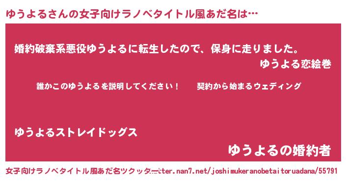 | 男性向けラノベタイトル風あだ名 | 『ユウヨルアートオンライン』 |