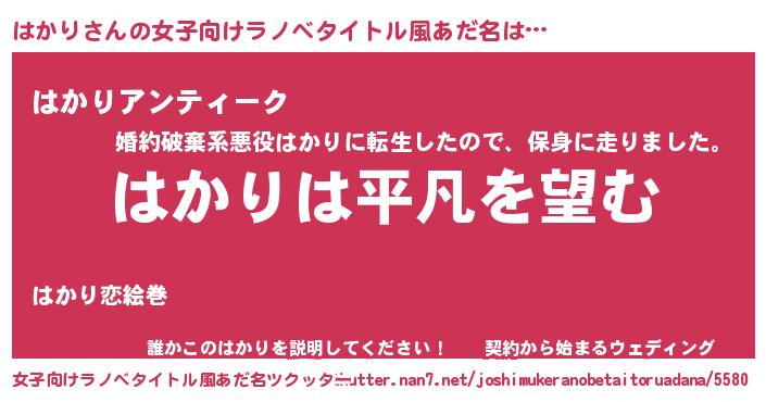 | 男性向けラノベタイトル風あだ名 | 『ダンジョンにはかりを求めるのは間違っているだろうか』 |