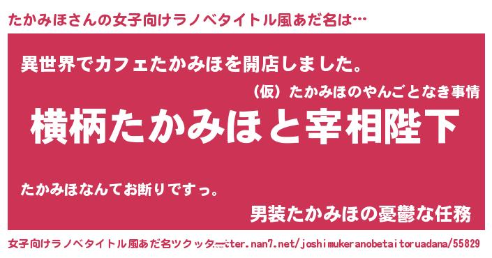 | 男性向けラノベタイトル風あだ名 | 『たかみほに滅ぼされるだけの簡単なお仕事です』 |