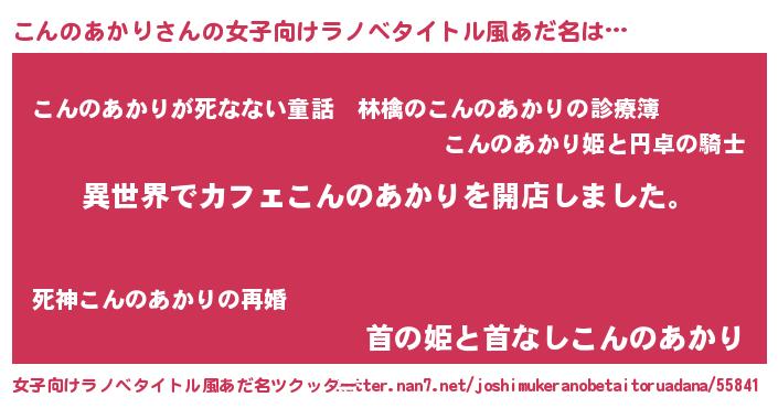 | 意味不明あだ名 | 『永久保存こんのあかり』 |