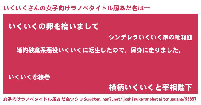 | 男性向けラノベタイトル風あだ名 | 『転生したらいくいくだった件』 |