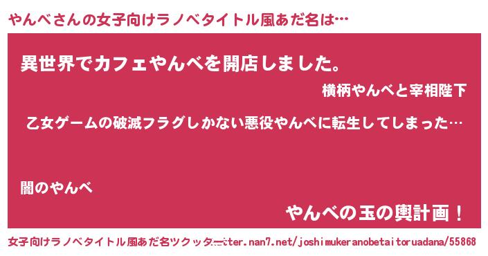 | 胡散臭い通販商品みたいなあだ名 | 『世界中を虜にした世界で10本だけ現存している希少なブランデー…その名も「やんべ」』 |