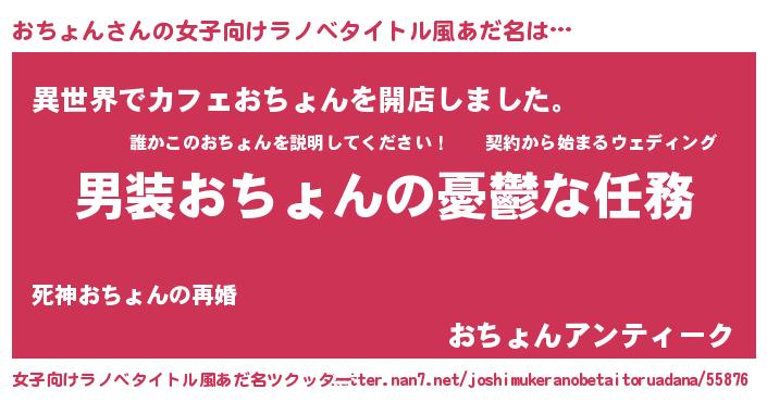 | 胡散臭い通販商品みたいなあだ名 | 『前代未聞の健康食品…その名も「おちょん」』 |