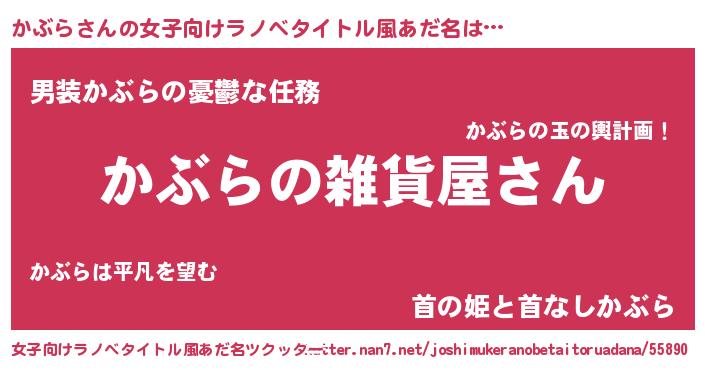| 男性向けラノベタイトル風あだ名 | 『やはりかぶらの青春ラブコメはまちがっている 』 |