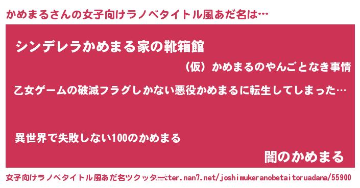 | 男性向けラノベタイトル風あだ名 | 『魔弾の王とかめまる』『緋弾のカメマル』 |
