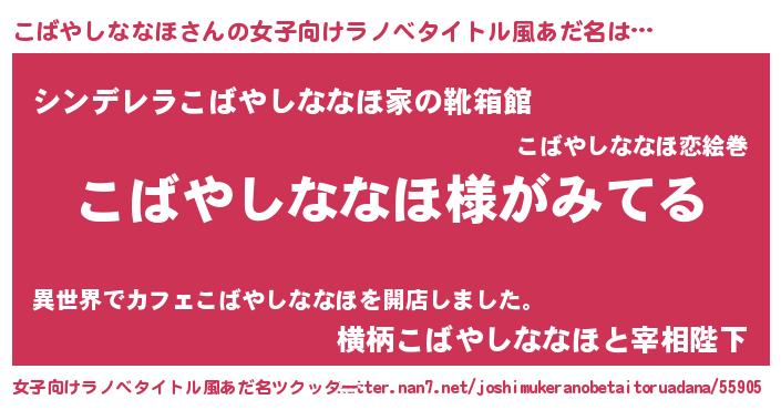 | 男性向けラノベタイトル風あだ名 | 『こばやしななほの嫁は女の子じゃないと思った?』 |