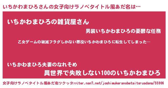 | 男性向けラノベタイトル風あだ名 | 『この素晴らしい世界にいちかわまひろを!』 |