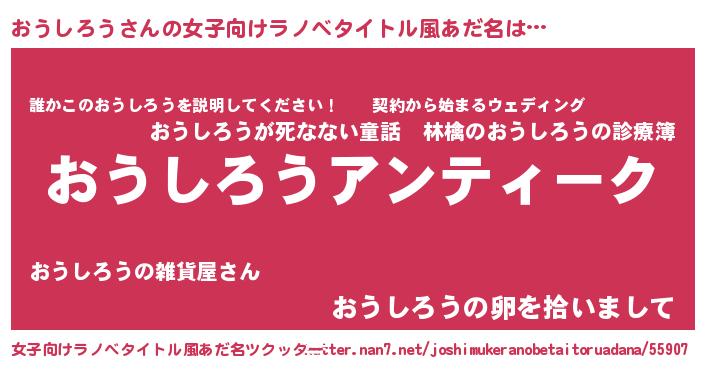 | 胡散臭い通販商品みたいなあだ名 | 『テレビで話題の高麗人参…その名も「おうしろう」』 |
