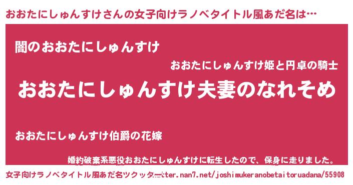 | 男性向けラノベタイトル風あだ名 | 『おまえをオタクにしてやるから、俺をおおたにしゅんすけにしてくれ! 』 |