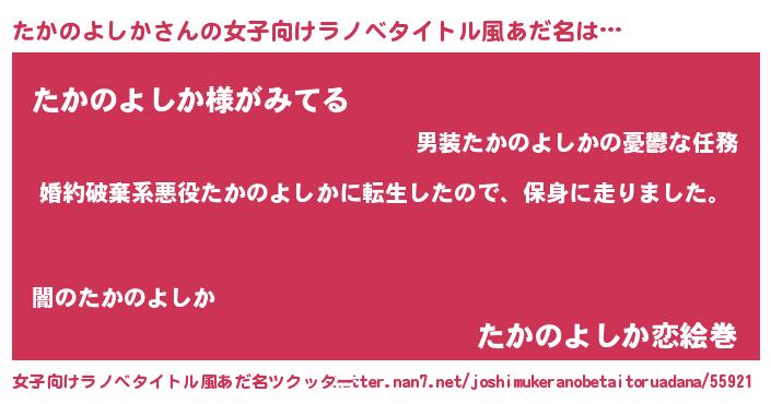 | 胡散臭い通販商品みたいなあだ名 | 『伝統あるサプリメント…その名も「たかのよしか」』 |