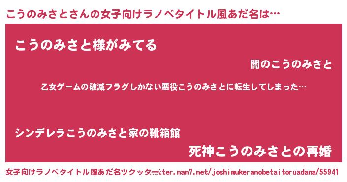 | 意味不明あだ名 | 『住所不定無職こうのみさと(14歳)』 |