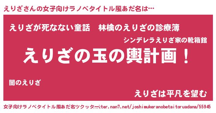 | 男性向けラノベタイトル風あだ名 | 『転生したらえりざだった件』 |