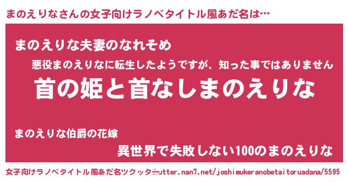 | ヒーロー風カッコイイあだ名 | 『正義の使者まのえりな』『仮面マノダー』 |