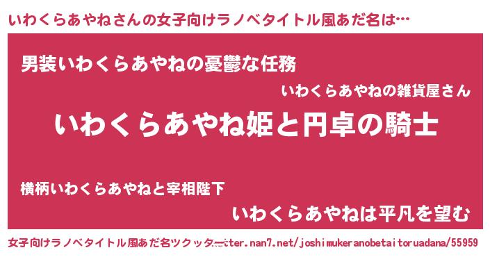 | 男性向けラノベタイトル風あだ名 | 『イワクラアヤネアートオンライン』 |