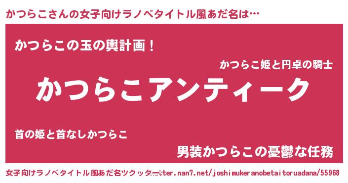 | 男性向けラノベタイトル風あだ名 | 『魔法科高校のかつらこ』 |
