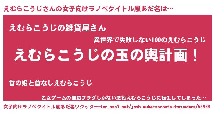 | 男性向けラノベタイトル風あだ名 | 『えむらこうじ~年齢イコール彼女いない歴の魔法使い~』 |