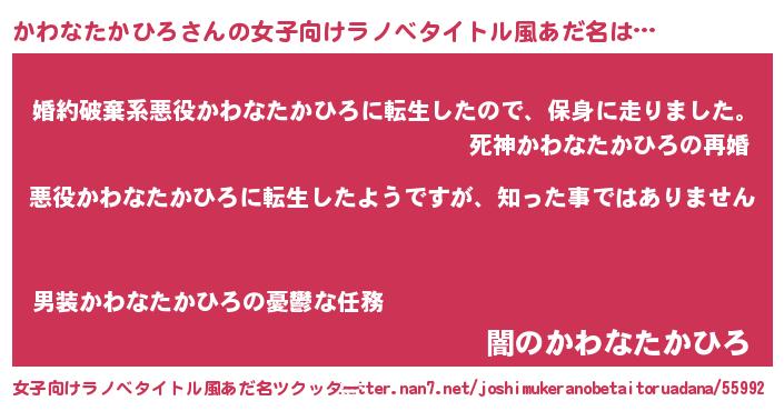 | 胡散臭い通販商品みたいなあだ名 | 『あなたにだけ特別に提供する限定10本のレアな日本酒…その名も「かわなたかひろ」』 |