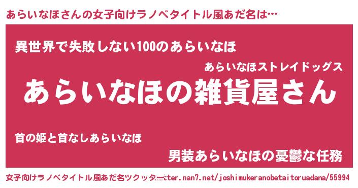 | 男性向けラノベタイトル風あだ名 | 『やはりあらいなほの青春ラブコメはまちがっている 』 |
