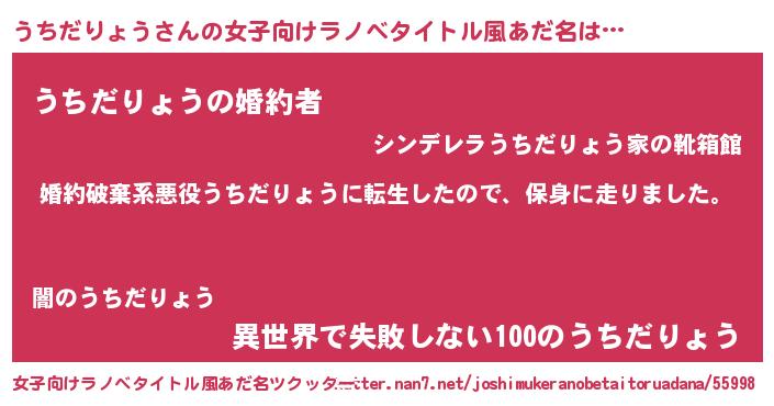 | 男性向けラノベタイトル風あだ名 | 『ウチダリョウスレイヤー』 |