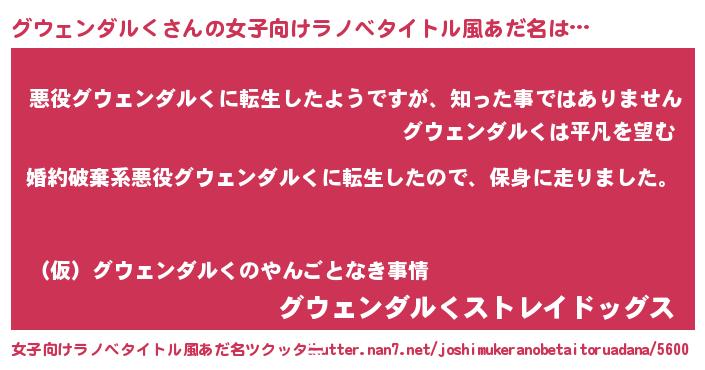 | 男性向けラノベタイトル風あだ名 | 『転生したらグウェンダルくだった件』 |