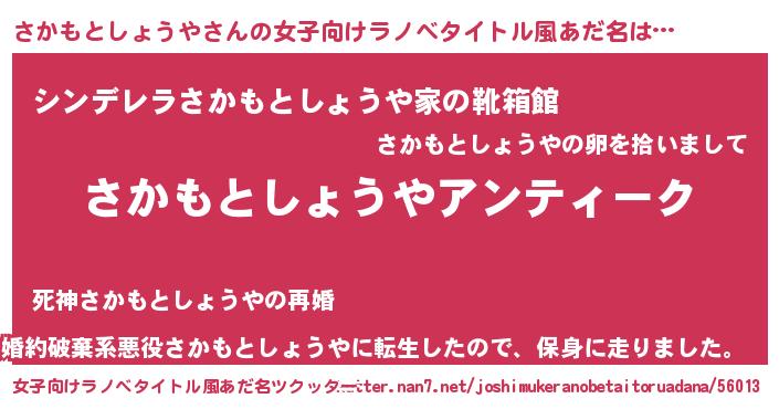 | 意味不明あだ名 | 『自称さかもとしょうや』 |