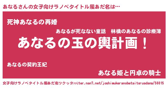 | 男性向けラノベタイトル風あだ名 | 『転生したらあなるだった件』 |
